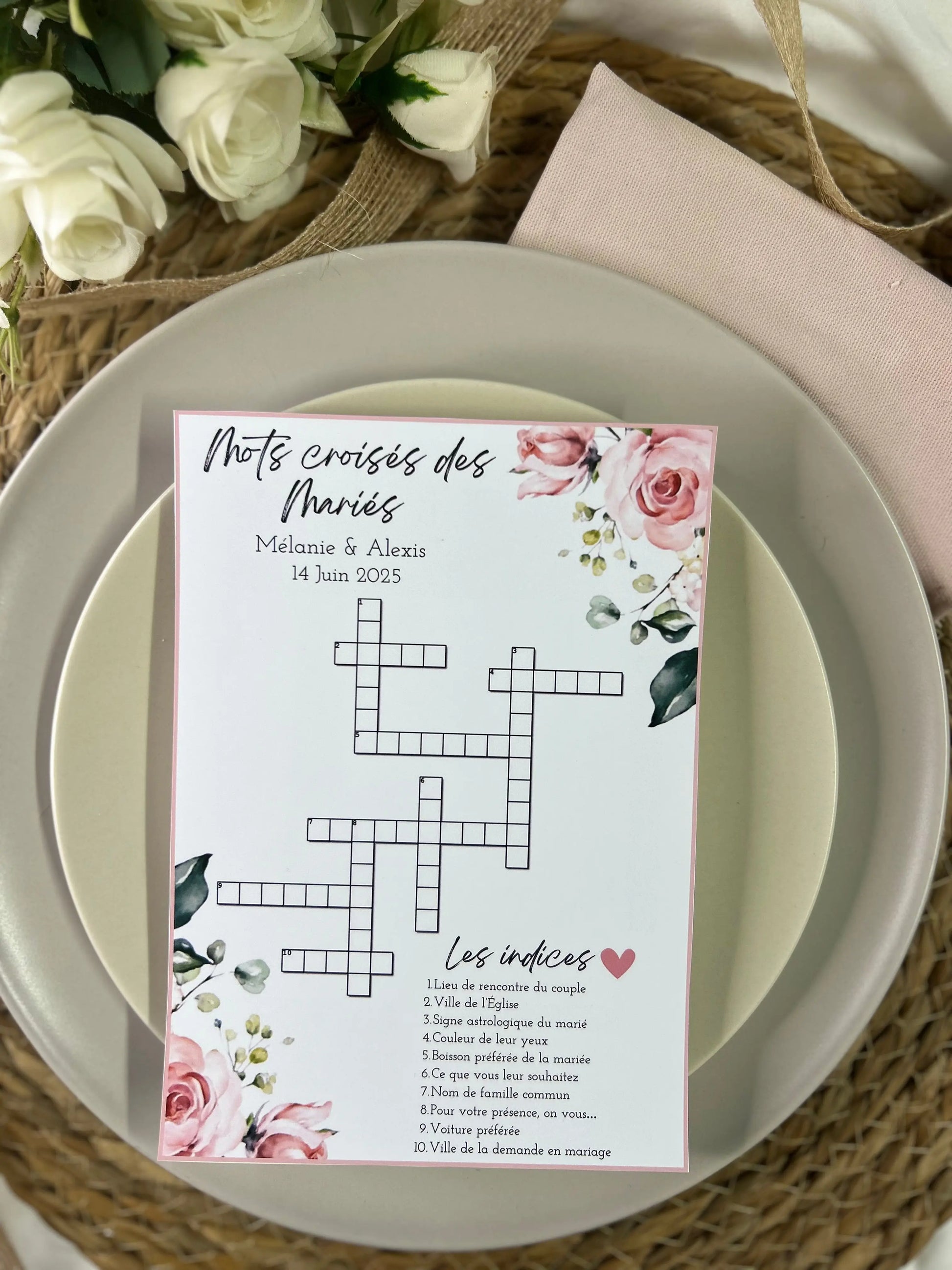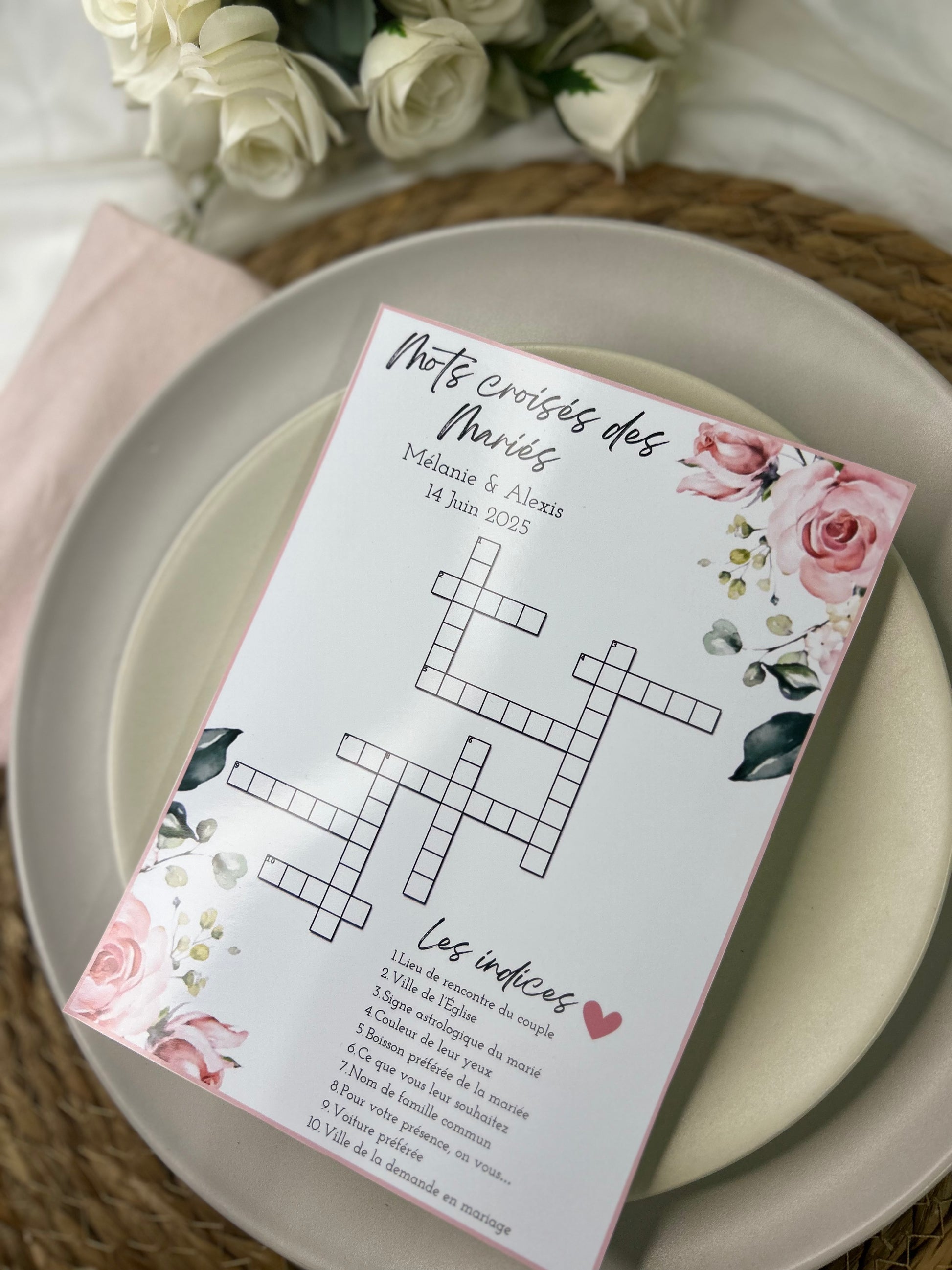 Faites plaisir à vos invités grâce à une animation aussi original que chaleureuse, les mots croisés des mariés.